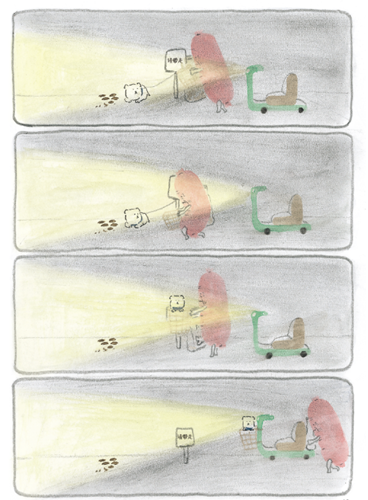 安寧達表示,自己在開始創作《香腸爺爺》的時候就將讀者定位為成年人。這部圖畫作品十分厚重,多達264頁,由662張圖片構成,圖片多以分鏡呈現。除去復雜、精巧的畫面處理,她在創作時也傾注了自己對于人生悲喜的感悟。韓國劇作家“清涼的仲夏夜”讀完作品,直言這本書的表達讓人熱淚盈眶。韓國圖畫書評論家金智恩認為《香腸爺爺》平靜地傳達了“愛始于最孤獨的地方”這一主題,像鈴鐺一樣緩緩響起,余音繞梁,令人長久深思,“預示了繪本敘事的新可能,是一部面向未來的作品”。