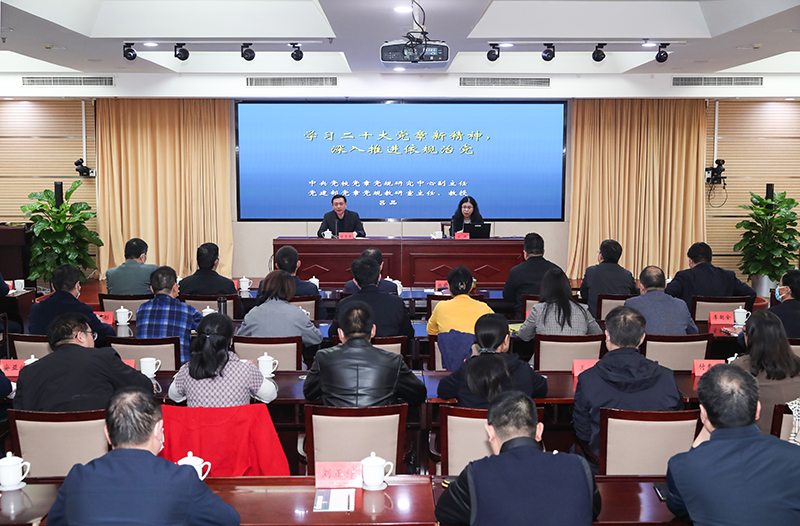 張宏森指出,黨章是黨的根本大法,是全黨必須遵循的總規矩。黨的十八大以來,以習近平同志為核心的黨中央高度重視制度治黨、依規治黨,加強頂層設計和統籌規劃,密集出臺黨內法規制度,加快構建和完善黨內法規體系,開辟新時代依規治黨新境界。學習貫徹黨章黨規,是加強黨的建設的一項基礎性經常性工作,也是全黨同志的應盡義務和莊嚴責任,是深入學習貫徹黨的二十大精神、扎實推進新時代黨的建設新的偉大工程,進而全面推進黨和國家各項事業發展的需要。