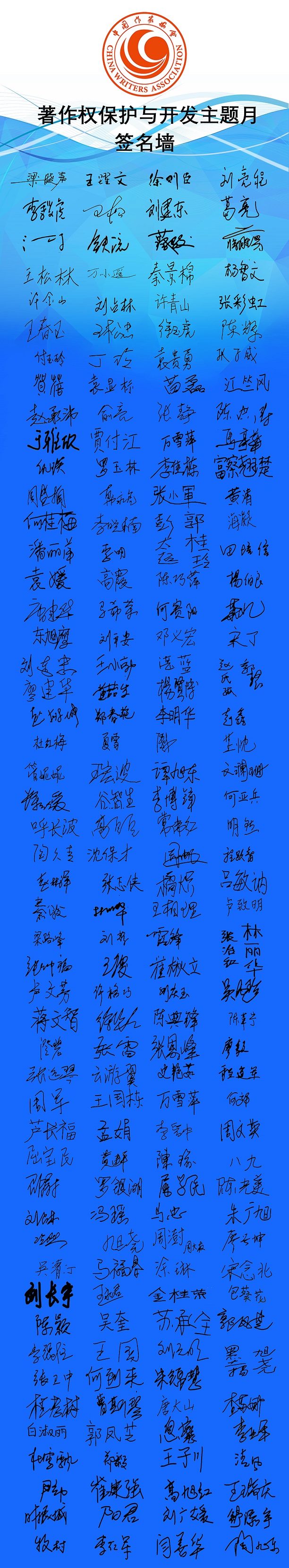 通過簽名墻的發布,主辦方向全社會傳遞了積極向上的信息和態度,即尊重和保護著作權是文學事業發展的重要前提和保障。我們相信,在全社會的共同努力下,著作權保護和開發的工作會取得更大的進展和成果。