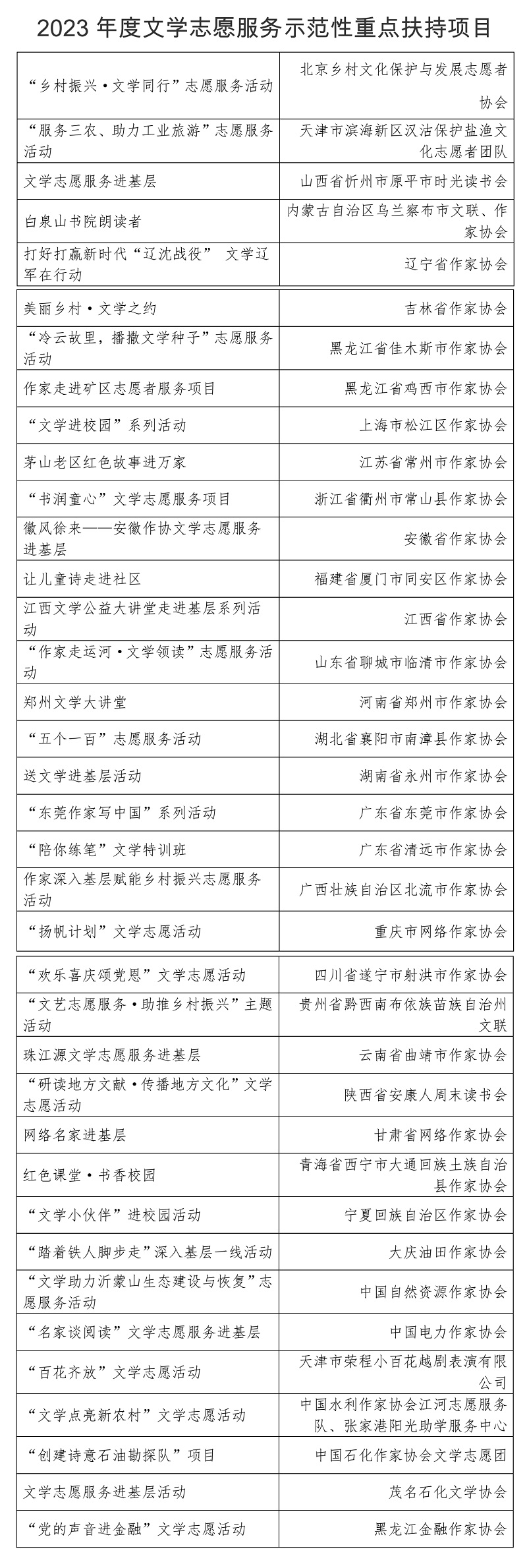 2023年度文學志愿服務示范性重點扶持項目名單公布