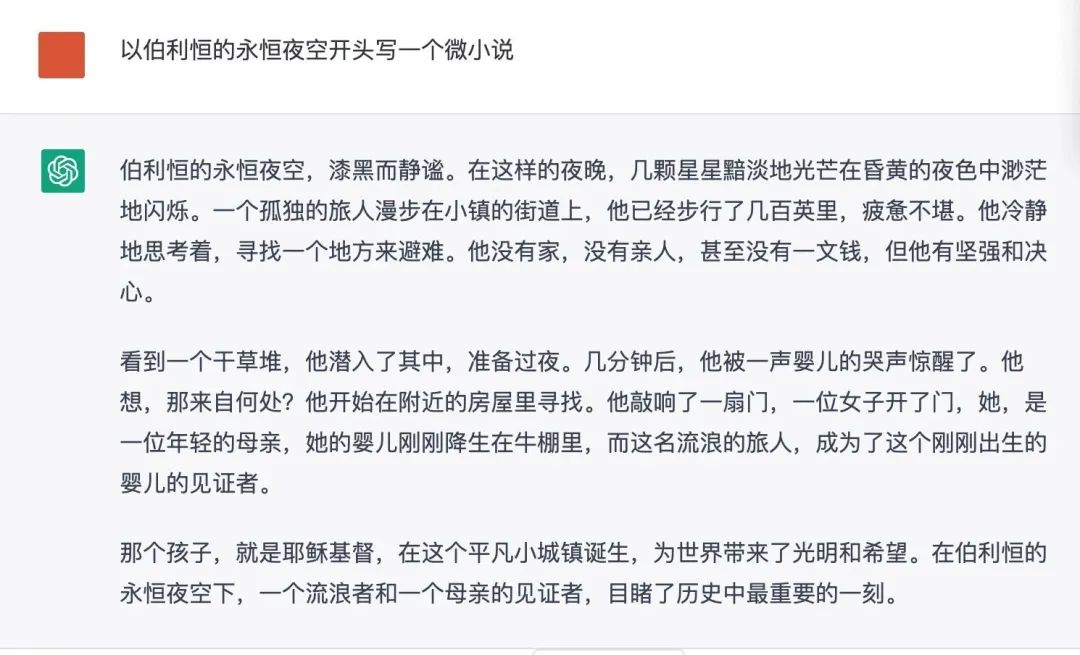 ChatGPT以“伯利恒的永恒夜空”為開頭寫的微小說