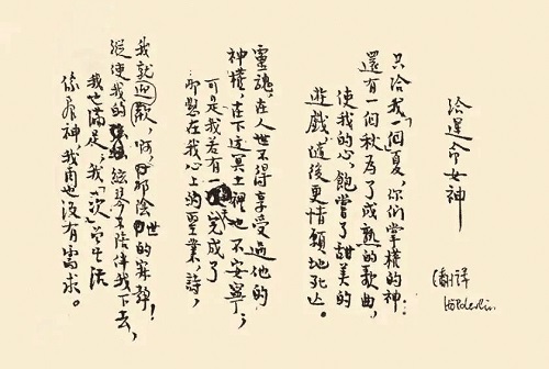 馮至翻譯荷爾德林詩《給運命女神》手稿