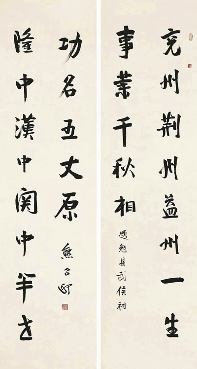 觀看《翰墨中華》展覽后,深感其特點之一是:詩書雙暢,珠聯璧合;文人書風,端雄清雅。其端雄的韻味往往以楷行的筆調、碑意的線條展示出器宇軒昂的正大氣象,如賞故國神游篇章中《題勉縣武侯祠》的龍門對“兗州荊州益州一生事業千秋相,隆中漢中關中半世功名五丈原”,聯莊詞工、字端氣雄,這幅作品堪稱佳作。熊召政先生在故國神游篇中有一副對聯《題漢中石門陳列館》中寫道:“天下英雄歸漢室,筆底風濤入石門”,可謂詩書合璧,精神飛動,有氣韻酣暢,意精墨妙之豪趣。