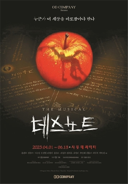 同樣在疫情期間進行了制作改進的還有音樂劇《死亡筆記》。這部日本漫改音樂劇于2015年首演,同年推出了韓國版,并于2017年進行了二輪演出。制作公司從2022年的第三輪演出時起,對該劇的舞美進行了全面升級:之前版本的舞臺實景幾乎全部消失,只保留了一些簡單的桌椅;舞臺的天花板、背幕及地板鋪設了1340 塊LED屏幕,所有布景都由LED 屏上的動態多媒體完成;三臺激光投影儀共同運轉,以點、線、面勾勒出不同的透視關系和舞臺氛圍,在場景中迅速切換,或劃分舞臺空間,或配合人物動線以及視角,仿佛魔法一般。