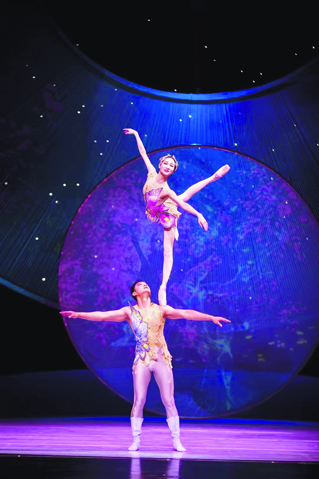 二、雜技劇現在不僅能夠比較成熟地展開故事的講述,還在藝術形式、審美風格等方面做了多種探索。吳橋雜技大世界旅游有限公司的《江湖》用樸素的雜技語言描寫了歷史上吳橋雜技藝人闖江湖、行俠仗義的人生百態,表現了雜技從吳橋走向國際,從謀生手段提升為藝術表演的蛻變。濟南市雜技團的《泉城記憶》以“山水”“人文”“未來”三個篇章,用抒情化的多元藝術語言抒寫了濟南的前世今生以及未來圖景。廣州市雜技藝術劇院的《化·蝶》則用唯美的語匯,融合雜技、舞蹈、戲曲的審美,散文詩化地表現了“梁?!睍缡赖麘俚膫髌婀适?。