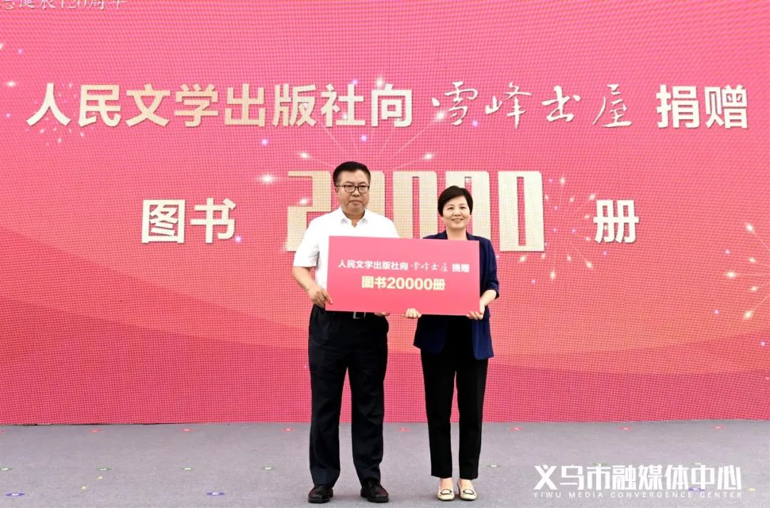 馮雪峰同志是新中國成立后人民文學出版社的首任社長。會上,為支持雪峰書屋建設,人民文學出版社特向義烏捐贈圖書2萬冊。