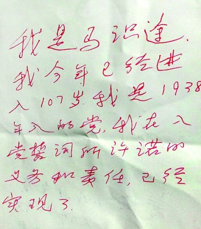 我是馬識途,我今年已經進入107歲。我是1938年入的黨,我在入黨誓詞所許諾的義務和責任,已經實現了。