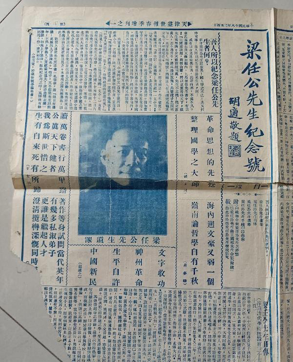 夏曉虹教授在《寂寞身后事——時人眼中的梁啟超》一文中提到:“王國維從始至終只是一個書生,且為人落落寡合,梁啟超則親朋密友眾多,其人在政界、學界又均享盛名,而梁之身后寂寞,當日似只有天津《益世報》于3月4日出版過春季特刊‘梁任公先生紀念號’(因系隨報附送,已難尋覓),反不及王氏尚有多種紀念??惺?,的確顯得不可思議。好像生死榮哀,人世的情誼是這樣靠不住?!贝颂?,夏曉虹教授提到的“梁任公先生紀念號”系《益世報》當年春季增刊之一,如今“已難尋覓”。這里將“紀念號”內容簡要介紹,以供研究者參考。