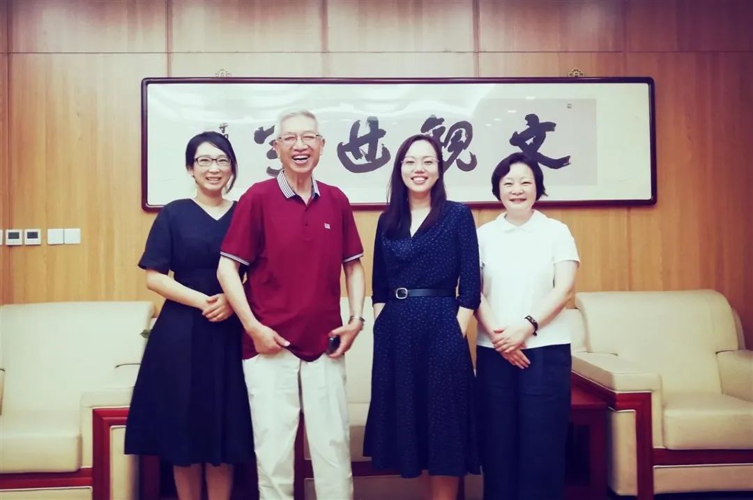2019年9月1日,吳福輝先生在現代文學館C座貴賓室與“中國現代文學館文學名家資料片”部分攝制組成員合影。右起:計蕾、尹詩、吳福輝、王雪。
