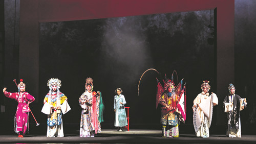 舞臺表現方面,劇中主人公憶秦娥自如地出入敘事和抒情,同時將傳統京劇人物外化為“戲魂”,巧妙地融入憶秦娥的內心視象。音樂設計突出民族器樂的獨奏特點,笙、簫、笛、二胡、京胡、高胡、琵琶等發揮了“四兩千斤”“以一當十”的能量。此外,聲聲板鼓貫穿全劇始終,既是胡三元的職業縮影,又是引領、伴隨、激勵憶秦娥成長的動力。舞美設計根據京劇虛擬性特征設計的懸掛式可轉動框架,既標志著舞臺臺口,亦是時間流逝和時代變遷的外化,象征人生舞臺亙古不變、周而復始。
