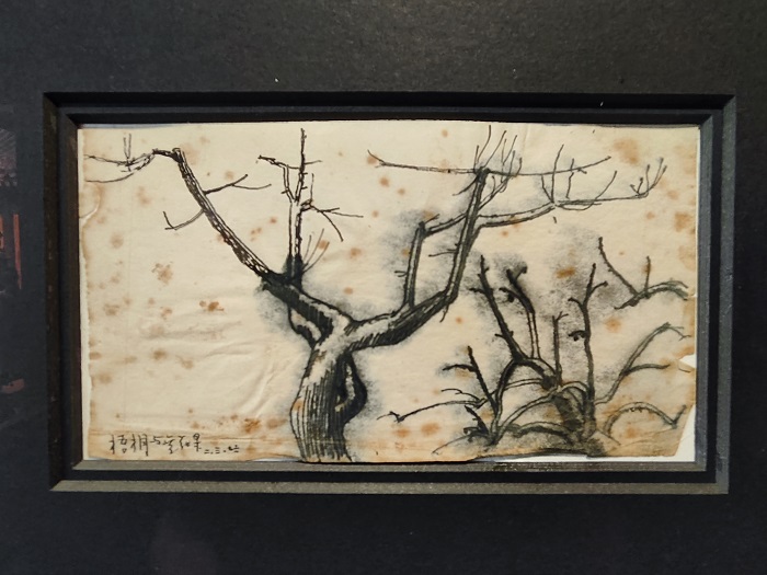 金宇澄的繪畫經歷可以追溯到其青年時期在東北知青的日子,2011年以《繁花》插圖開始畫畫,本次展出的《梧桐與無花果》作于1976年,是他那個時期保留下來的唯一一件手稿。在梧桐與無花果旁邊的作品是一張藝術家自畫像。