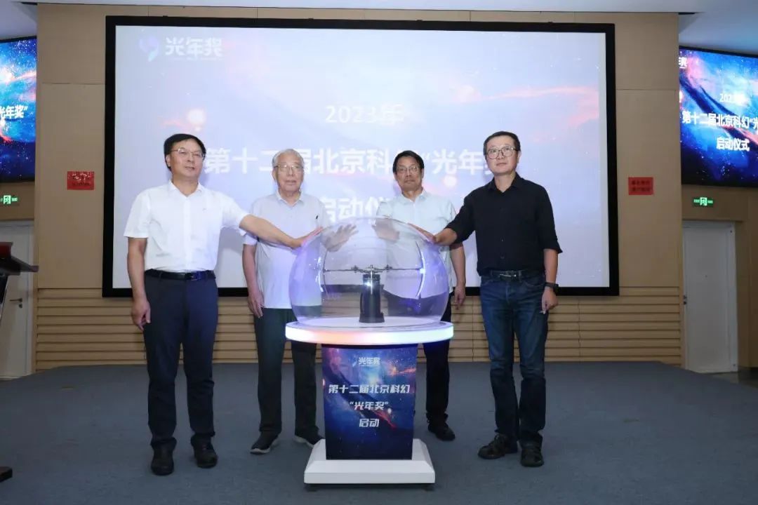 來自科幻創作、科幻研究、科幻產業、科幻教育等領域的嘉賓也分別剖析了科幻對當前時代的意義,鼓勵公眾積極參與到科幻創作當中,通過北京科幻“光年獎”平臺展露光采。隨后,陳維成、尹傳紅、王晉康、劉慈欣上臺,共同啟動2023年第十二屆北京科幻“光年獎”。