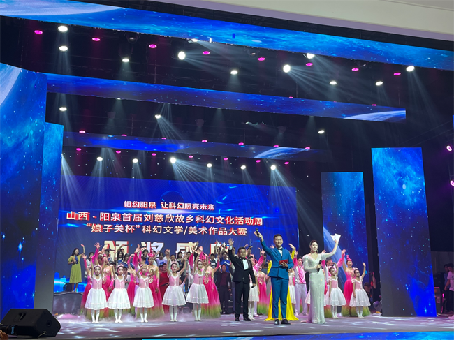 在8月15日下午舉行的“娘子關杯”科幻文學/美術作品大賽頒獎盛典上,劉慈欣、姚海軍、超俠等為獲獎者頒獎。大賽由山西省作協、美協、陽泉市委宣傳部聯合主辦,共收到來自全國各地的文學作品465篇,美術作品1728幅。王云軒的《重生之愿》、寇妙琦的《面朝大海指南》和邵子岐的《天算》獲得文學類一等獎。張利慧憑借國畫《太空家園》獲得首屆全國青少年科幻美術作品大賽最高獎項。