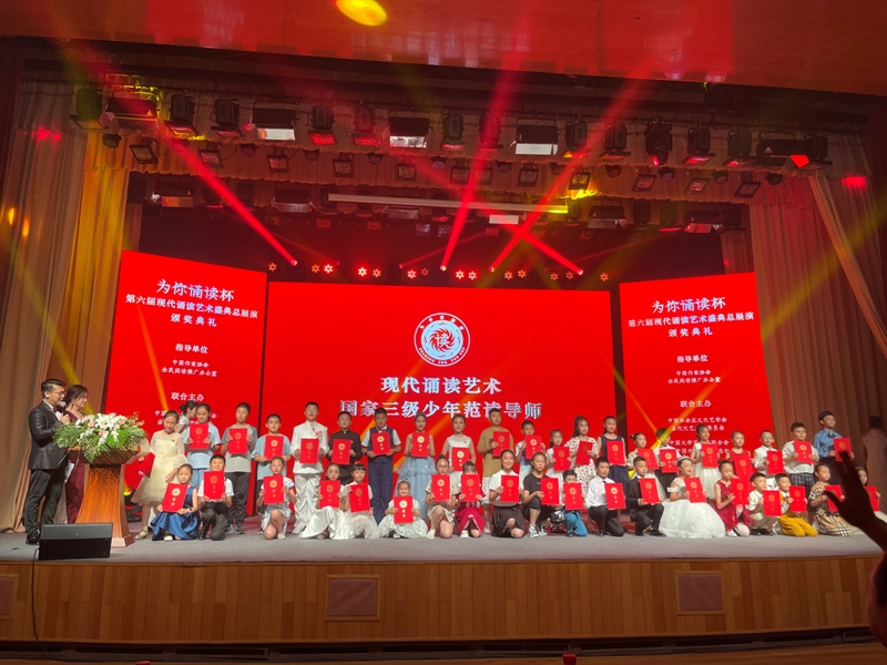 8月20日,由中國作家協會全民閱讀推廣辦公室指導,中國社會主義文藝學會、中國文聯《中國文藝家》雜志社、中國民族文化藝術基金會等聯合主辦,北京誦讀文化發展有限公司承辦的第六屆“現代誦讀藝術盛典總展演頒獎典禮暨誦讀藝術家頒獎盛典”在中國現代文學館舉行。中國作協社會聯絡部主任、全民閱讀推廣辦公室負責人李曉東,中國文聯《中國文藝家》雜志社社長向陽,中國民族文化藝術基金會管委會主任宋國宏,中國社會主義文藝學會當代工作藝術委員會執行副主席、“為你誦讀”創始人、盛典組委會主任項建新,中國戲劇家協會朗誦專業委員會主任瞿弦和等誦讀藝術家、詩人與會。盛典以“傳誦文學精品,弘揚誦讀文化”為宗旨,旨在發現更多適合誦讀的文學精品,并選拔出更多優秀的誦讀藝術人才。