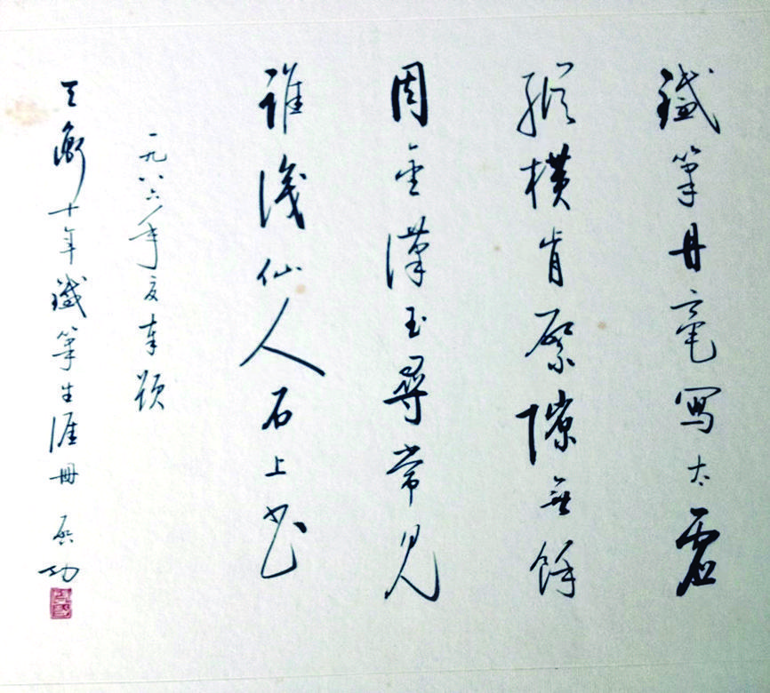 不一會兒他轉身打開墻邊的木櫥,取出薄薄一本線裝書讓我打開看。我小心地一頁頁翻讀起來,原來這是他悼念前年仙去的夫人章寶琛的詩冊,每頁上都是他清雅的小楷,每頁上都是他真摯的情感,字里、詩里寫盡人世間天人永隔、心曲不通的悲切,及對夫人刻骨銘心的懷念。