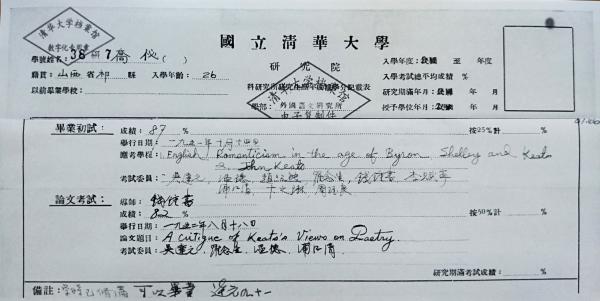吳達元是當時清華大學外文系主任,估計這是他在清華簽署的最后文件,因為當年6月公布全國高等院系調整方案,9月下旬全部完成,吳達元簽好這份文件就隨清華外文系一起并入北京大學西語系。而錢鍾書夫婦也隨即離開清華,調到新成立的文學研究所,此后再也沒有指導過研究生。