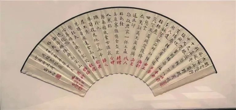 這是一個俞老專書于扇面上的墨寶,受書寫空間之限,整首《明定陵行》詩,尚留下最后十句,未能寫畢。俞老手跡,只寫至“時向深山仆大木”處。