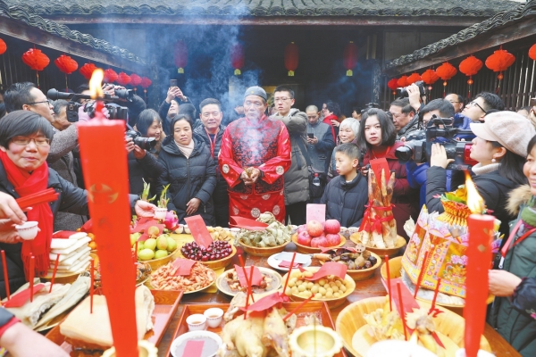 如今,朝北臺門已成為浙江省打造的鄉村博物館之一,向世人展現魯迅作品中紹興的風土人情和令他回味的快樂童年。會客廳里的大屏幕上,演著小說《祝?!防锏哪杲K大典;墻上、案頭的小喇叭,用紹興話講著魯迅兒時聽的故事;餐桌上,擺滿了少年魯迅常吃的釀面筋、津菜魚松、慈姑臘肉等“菜肴”。