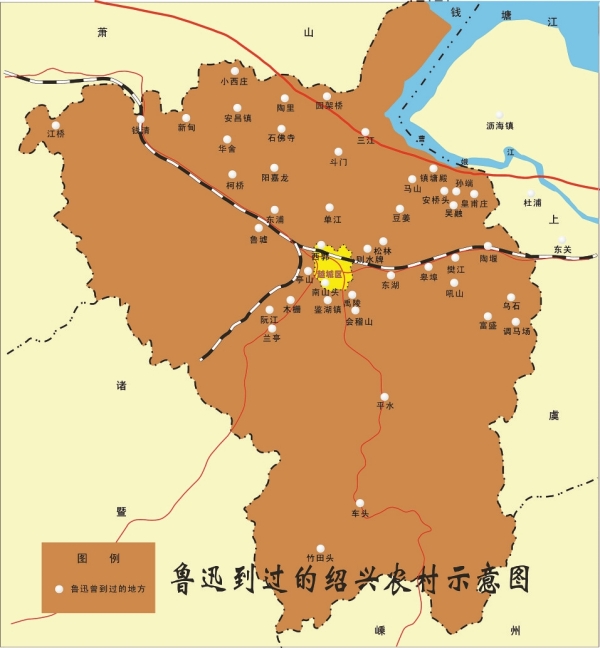 魯迅到過的紹興農村示意圖。紹興魯迅紀念館供圖