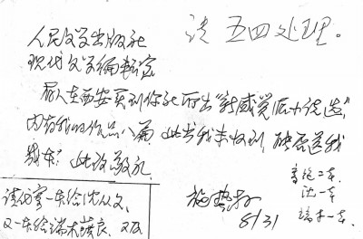 施老寫給我的信,不僅關涉到《新感覺派小說選》和《現代派詩選》,對人文社的出版工作也提出了很好的意見和建議。為了紀念施老,也為了給新文學史保留一份有價值的史料,現將施老的幾封來信如實抄出并略作說明。