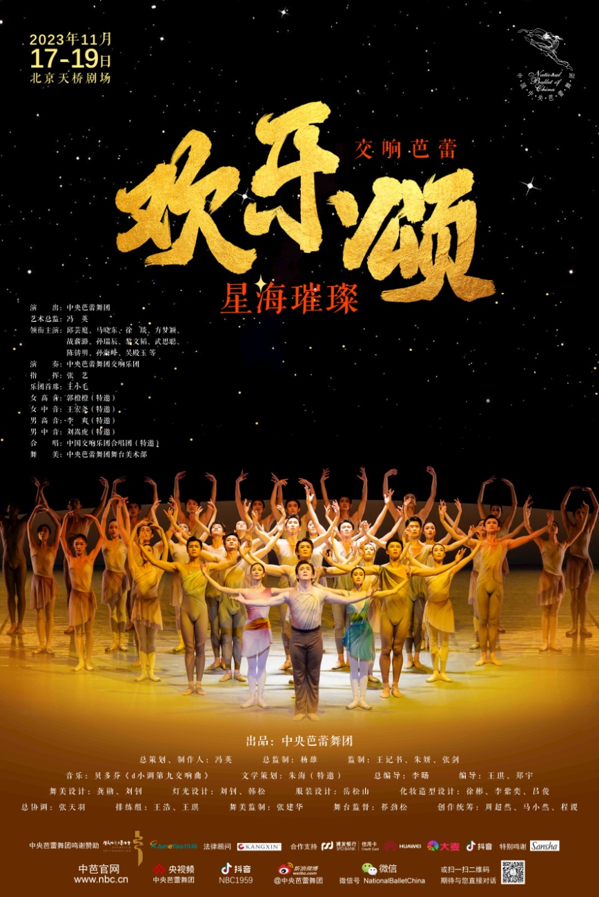 2023年11月17日至19日,中央芭蕾舞團將在北京天橋劇場帶來交響芭蕾《歡樂頌·星海璀璨》的首演。在明年即將迎來音樂家貝多芬《d小調第九交響曲》首演200周年之際,該作品將用交響芭蕾這一獨特的舞蹈語匯與藝術形式,首次以“舞團+樂團+合唱團”共220人的龐大陣容,將這部恢宏巨作傾情呈現。同時,此次演出將為由中芭主辦的“中國國際芭蕾演出季”10周年盛大啟幕,由此也傳遞出本屆演出季的重要主旨:構建人類命運共同體,一道共創和平、安寧、繁榮、開放、美麗的世界,一起奔向命運共同的璀璨星海。