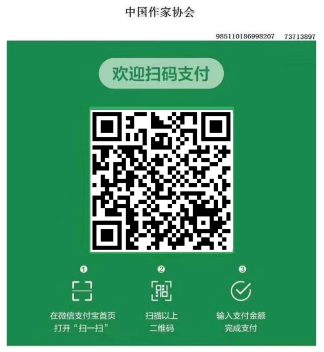 請掃描下方二維碼,通過微信或支付寶將會費直接轉入中國作家協會銀行賬戶。