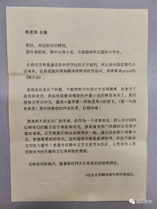 本次韓國“中國文學讀者俱樂部”活動不僅是中韓科幻作家和翻譯家的交流盛會,也為當地中國文學、出版界代表以及對中國語言、文化和科幻文學感興趣的廣大韓國讀者提供了了解中國文學、中國作家的難得機會。嘉賓們的分享不僅讓現場觀眾深入了解科幻創作的特點、邏輯和作家的成長故事,也展現了不同國家、不同文化背景科幻文學的碰撞與融合。這種跨文化交流對于推動科幻文學的發展,增進中韓兩國友誼具有重要的意義。