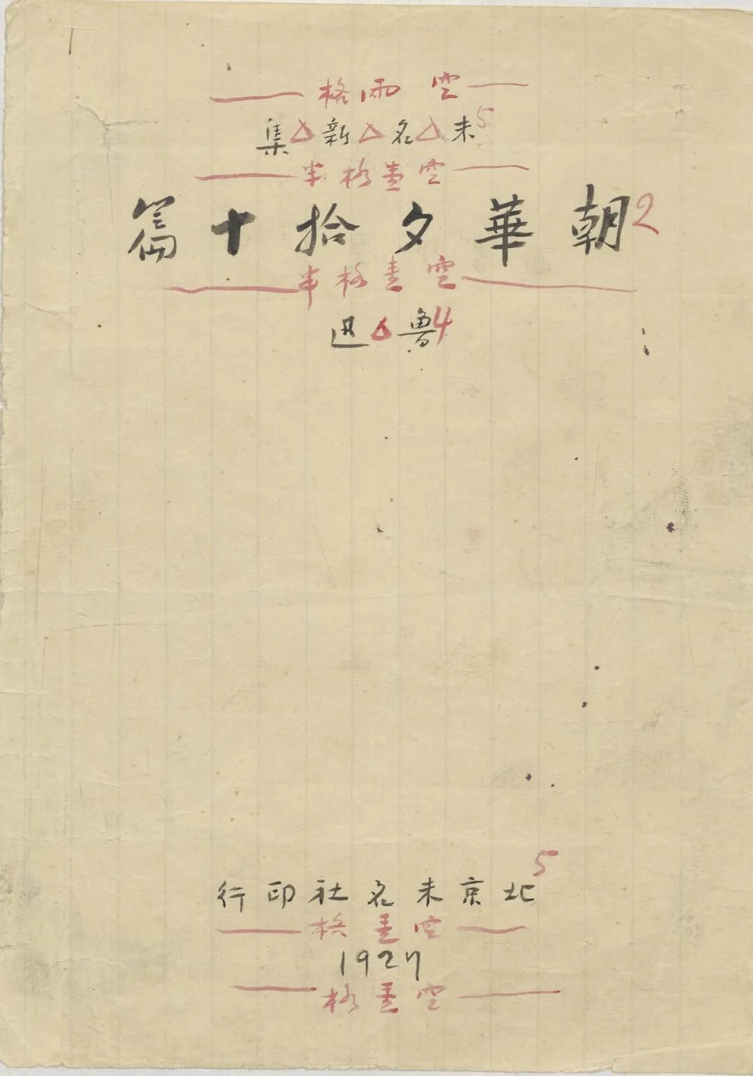 魯迅手稿《朝花夕拾》扉頁(中國國家圖書館提供)