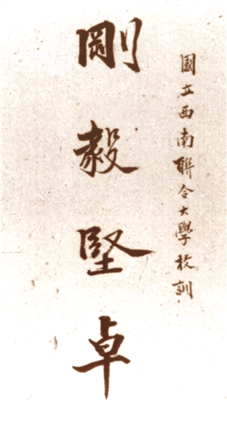 從此,“剛毅堅卓”成為聯大師生引以為豪的共同價值追求和共同遵循的辦學樹人目標。至于“共同之國訓”及一年后蔣介石親書的另一個“共同校訓”的制匾懸掛,聯大并未照辦。