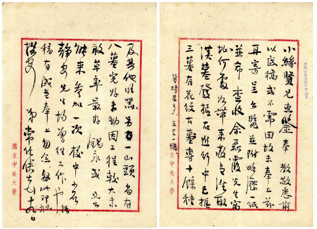 常任俠與李小緣兩位先生都是文獻意識極強的學者,尤其是李小緣先生,他們保存的這批抗戰時期的往來書信,不僅有助于我們了解兩位先生的交往,更能透過書信文字的背后感受中國知識分子學術救國的精神,彌足珍貴!