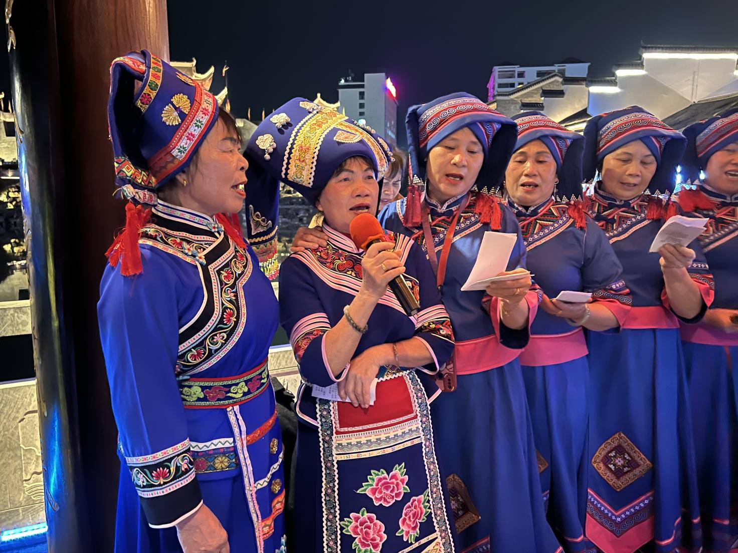 太平古城隨處可見身著民族服飾的人們,不過最多的還要數壯族服飾。圖為身著壯服的婦女合唱壯族民歌。