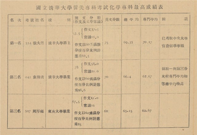 國立清華大學留美??瓶荚嚮瘜W??谱罡叱煽儽?/span>