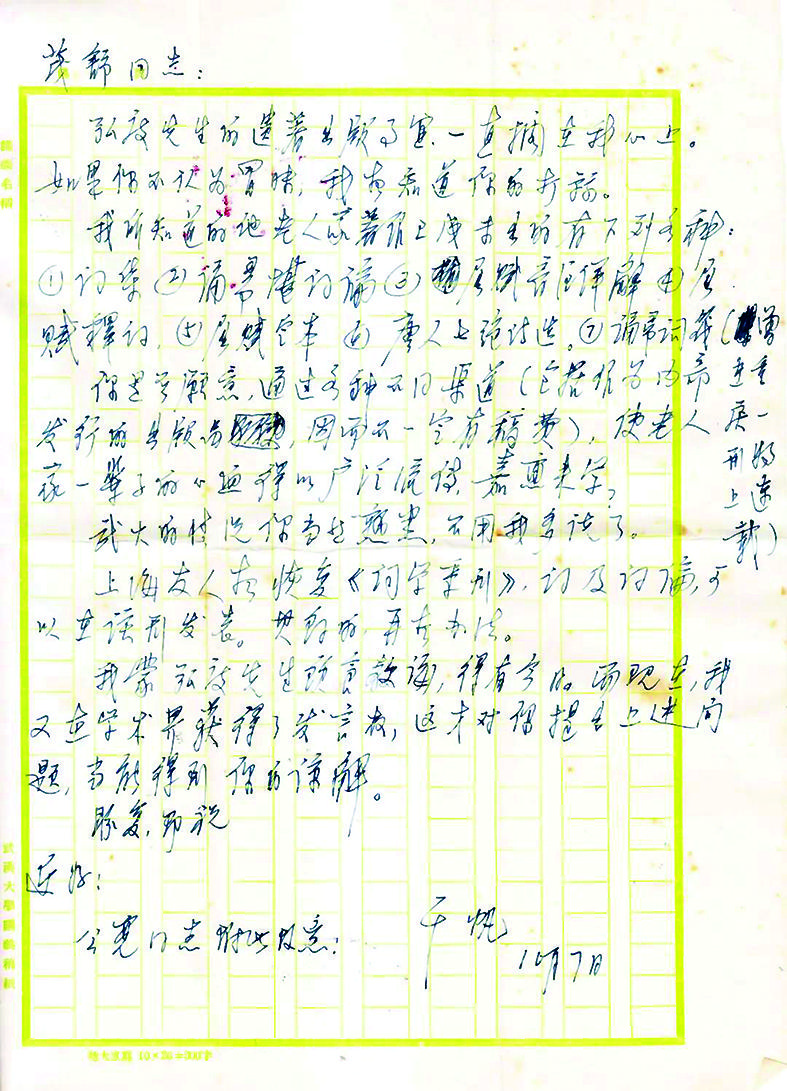 “弘度先生的遺著出版事宜,一直擱在我心上?!颐珊攵认壬嬍辰陶d,得有今日?!?——程 千 帆致劉茂舒,1979年10月7日