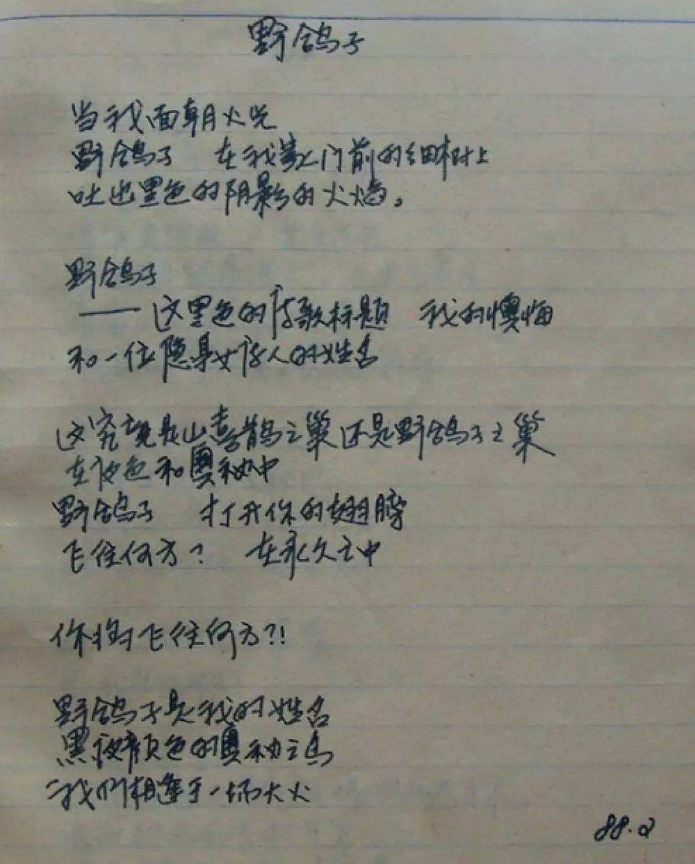 海子這篇寫于1985年10月的文章,是他生前為數不多的詩歌評論,同時也是一篇被《海子詩全集》漏收的佚文。盡管此文目前呈現的內容殘缺不全,但從字里行間依然能看出海子獨特的評論才華,海子熟練地運用散文筆法寫作詩歌評論,使這篇詩歌評論具有了不一樣的風格和文本魅力。