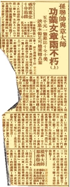 題為《孫聯帥與章大師,功業文章兩不朽》的這篇評論文章,篇幅頗為可觀,約有近五千字的文字內容,于1936年3月25日、27日、28日、29日,分四次連載。