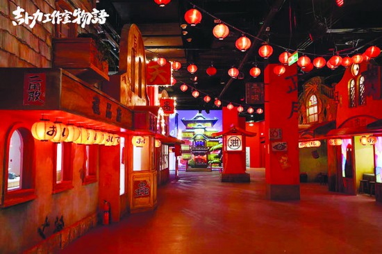 主館百米開外的副館則構成了意外的大彩蛋。數百平方米的敞闊空間,復現了日式宮殿風格的湯屋,張燈結彩的街市,漫步其中,能夠窺見黑影,邂逅無臉男,《千與千尋》中千尋進入神隱世界的奇妙場景讓人仿佛身臨其境。從無臉男手中接過福簽體驗券,觀眾還能到湯屋抽取自己的幸運湯牌。這是展覽特別設置的吉卜力限定周邊區域和主題餐飲空間,打開更為豐富多元的沉浸式體驗。