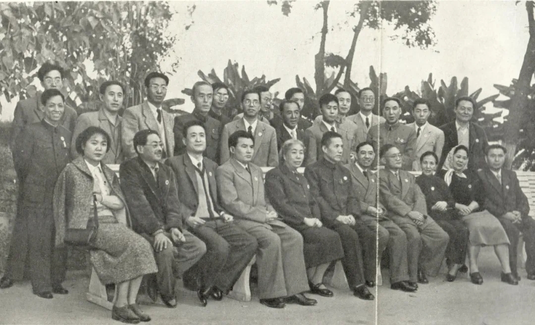 圖1 1958年10月,出席亞非作家會議中國代表團合影。團長茅盾(右五),副團長周揚(右六)、巴金(右四)。團員有戈寶權、葉君健、劉白羽、曲波、祖農·哈迪達爾、季羨林、趙樹理、袁水拍、郭小川、納·賽音朝克圖、庫爾班·阿里、許廣平、張庚、楊朔、楊沫、瑪拉沁夫、謝冰心、蕭三。
