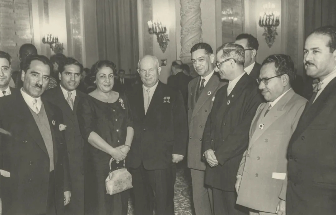 圖5 赫魯曉夫在克林姆林宮接見參加首屆亞非作家會議的埃及與敘利亞作家,來源:Rossen Djagalov, From Internationalism to Postcolonialism: Literature and Cinema between the Second and the Third Worlds, p.66.
