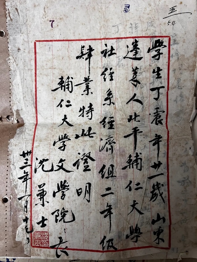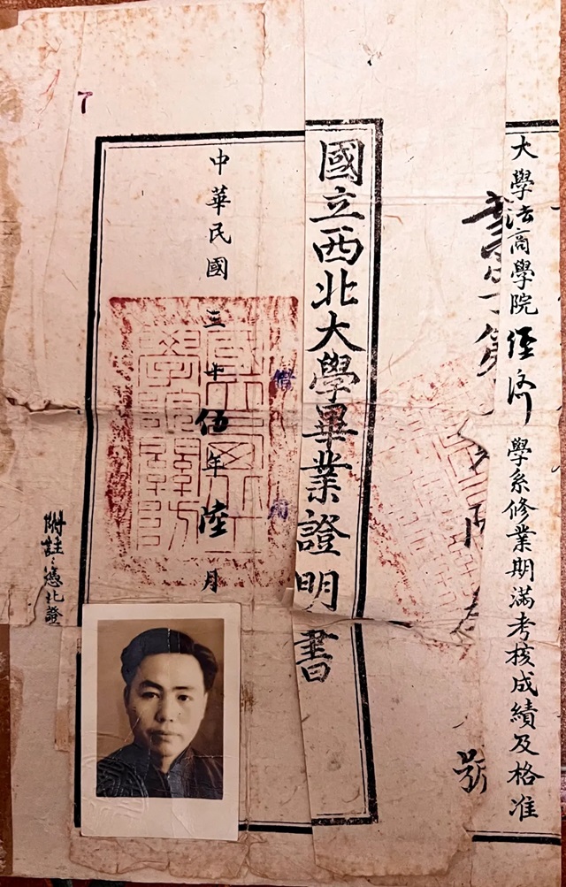 因抗戰爆發,父親1943年由輔仁大學肄業,轉至西北大學就讀,1946年畢業