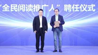 邱華棟為劉慈欣頒發“中國作協第二屆全民閱讀季”閱讀推廣人聘書