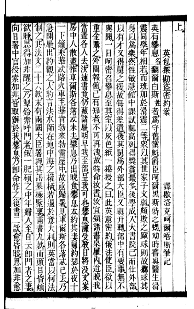 張坤德譯《英包探勘盜密約案》,《時務報》第六期,1896年,標“譯歇洛克呵爾唔斯筆記”。