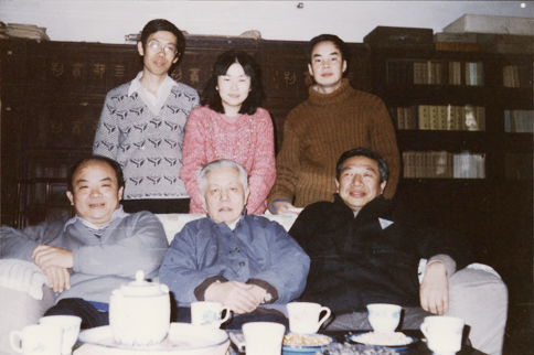 王瑤和學生們的合影:前排左起依次為錢理群、王瑤、吳福輝,后排左起依次為陳平原、張玫珊、溫儒敏