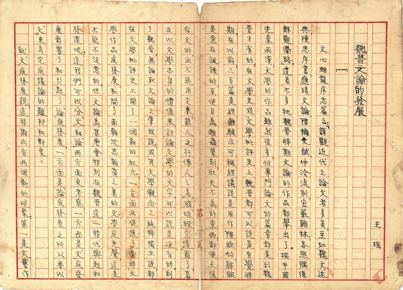 王瑤學位論文《魏晉文論的發展》封面,有朱自清、聞一多的打分