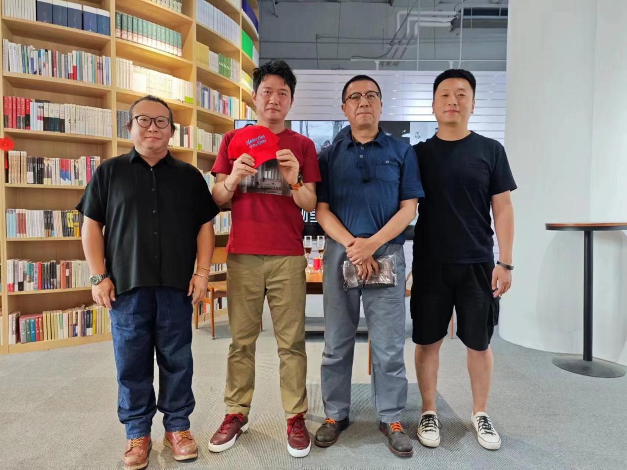 影片《先人一縷》部分主創現場合影。(從左至右:制片孫炎、原著方磊、攝影:儲可為、導演:王一驁)