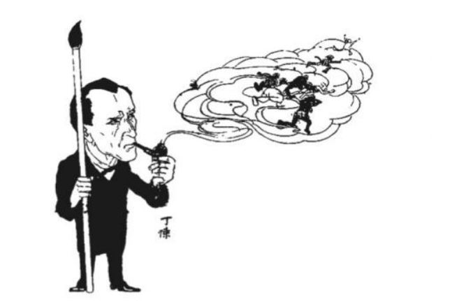 1926年,上海有一份名為《福爾摩斯》的小報創刊,一時間銷路很好,影響較大。這份《福爾摩斯》小報主要登載的內容并非偵探小說,而是專門揭露一些不為人知的社會黑幕、名人八卦,或者貪腐新聞等。但其借用“福爾摩斯”之名,顯然就是看中了讀者心中大偵探福爾摩斯所具有的明察秋毫的能力。而在1927年7月9日,為了紀念《福爾摩斯》小報創辦一周年,還專門請畫家丁悚畫了一幅福爾摩斯像,名為《魑魅遁形》,頗有一種以福爾摩斯自比,以至令一切魑魅魍魎,皆無所遁形的意思。本篇所選第二幅圖像就是丁悚所繪的這幅福爾摩斯畫像,后來也收錄在我編的《福爾摩斯中國奇遇記》(上海社會科學院出版社,2024年)中,作為全書的“輯封”插圖。