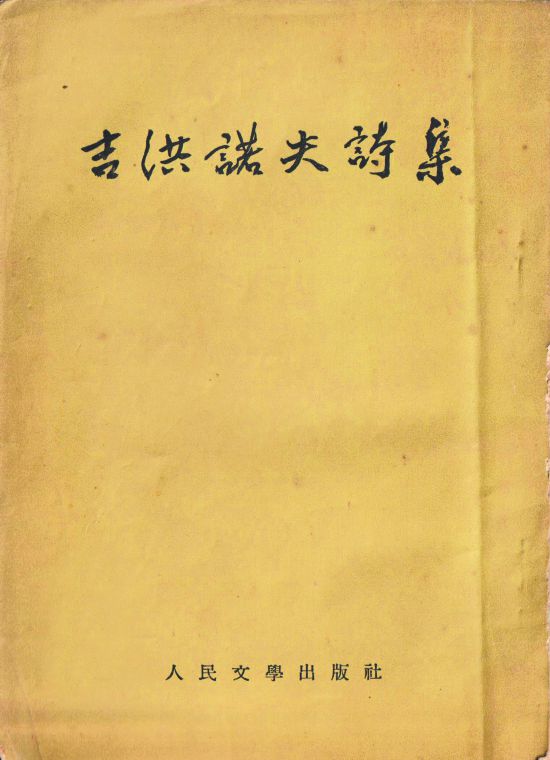 就在吉洪諾夫訪華期間,我國文學翻譯界已緊鑼密鼓地行動,準備用中文為他出版一本譯詩集。在當年12月,人民文學出版社出版了《吉洪諾夫詩集》,版權頁下端有一行字:“共印50130冊,內織錦套裝30冊,非賣品;絹面線裝100冊,平裝5000冊”。我想,其數量之大,裝幀之豪華,如此高的出版規格,恐怕中國詩人也沒有享受過吧。中國文學界、出版界給足了這位作為同行的“蘇聯老大哥”的面子。