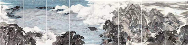 《聽濤山岳圖》 溫驤 作 紙本設色 248×1032cm 2015年