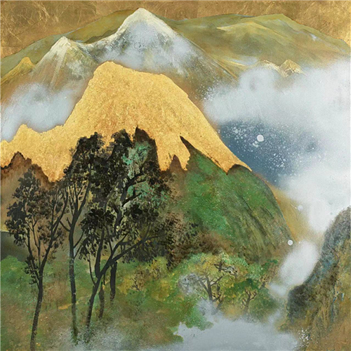 《雪山金頂》溫驤 作 木板漆畫、金箔 90x90cm 1999-2024年