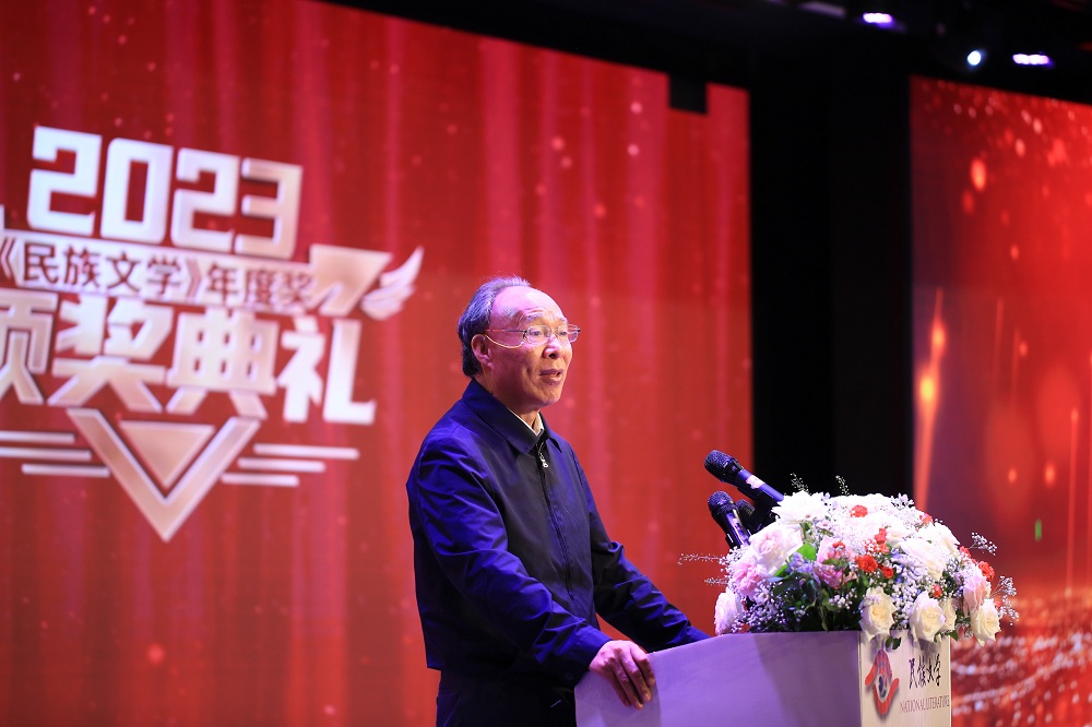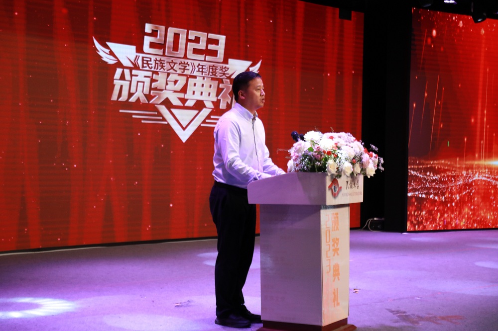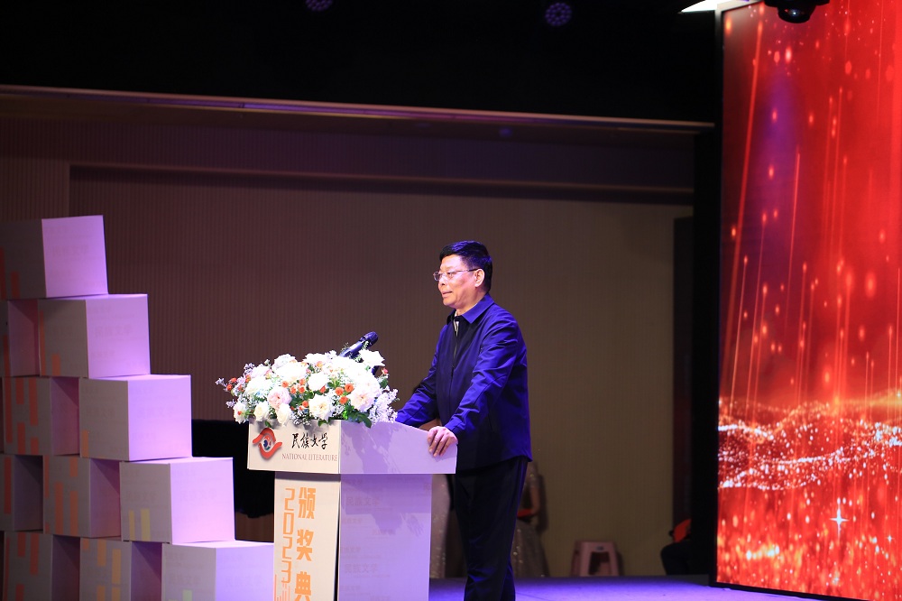 李一鳴在講話中指出,作為國家級民族文學期刊,《民族文學》創刊43年來,培養壯大民族作家隊伍,展現了多民族文學的豐沛活力和多彩光芒,為民族文學的繁榮發展作出重要而獨特的貢獻;《民族文學》年度獎設立十多年以來,推出了一大批具有民族風格、中華氣派、世界眼光、百姓情懷的優秀作品,贏得了廣大作家和讀者朋友的信賴,逐漸成為一個具有公信力的、多民族作家心向往之的文學獎項。面對紛繁復雜的國際國內形勢,李一鳴希望《民族文學》雜志社堅定文化自信,發揮國刊優勢,引領廣大少數民族作家深入貫徹落實習近平文化思想,積極探索民族優秀傳統文化介入新時代社會生活的創新路徑,挖掘各民族共享的中華文化符號和中華民族形象,推舉新時代新作家,反映新時代新氣象,塑造新時代新人物,成就新時代新經典;希望各民族作家相互理解、相互學習,相互尊重,在潛移默化的相互影響中樹立對中華文化的深層次認同,凝聚實現中華民族偉大復興的強大精神力量,為推進中國式現代化注入文化動力。