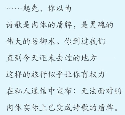 詩人的詞語并不來自詞典,而是來自生活。和所有熱愛生活的普通人一樣去生活,去經歷、去承受命運分配給你的那一份幸福和痛苦,去勞作和創造,去觀察和發現,去感受和體驗,讓你對生活的愛成為詩的源頭。無論生活的處境如何,無論在最后的時間里生活面臨怎樣的挑戰,保持感受力的完整、開放,讓同情和憐憫永遠陪侍左右,永遠不要麻痹和冷漠……